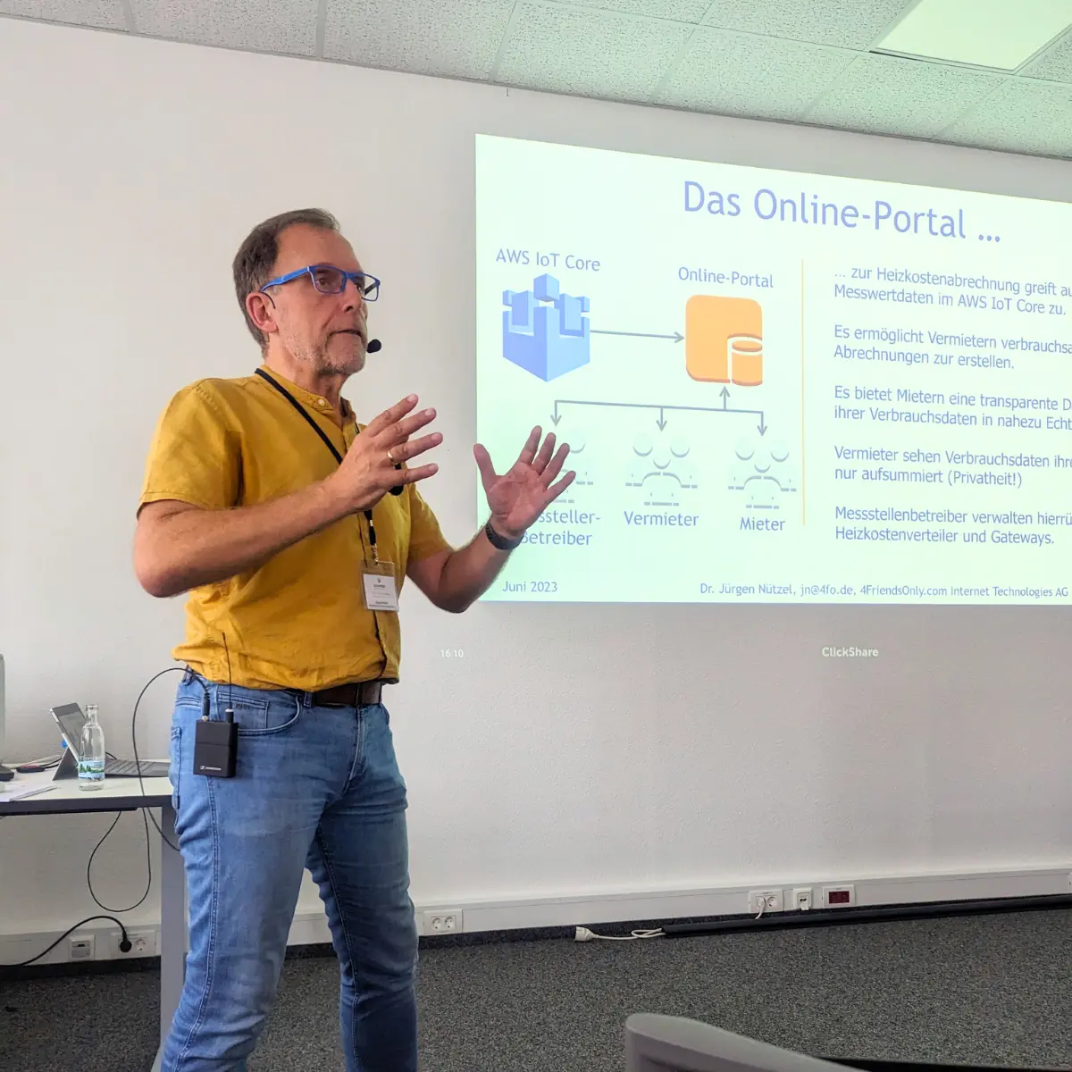 Unser CEO, Dr. Jürgen Nützel, hielt einen fesselnden Vortrag zum Thema „Vom Zähler zur Cloud – Die sichere und einfache Erfassung von Verbrauchsdaten mittels AWS IoT Core“. Die Präsentation erntete große Begeisterung und hielt die Zuhörer von Anfang bis Ende gefesselt.