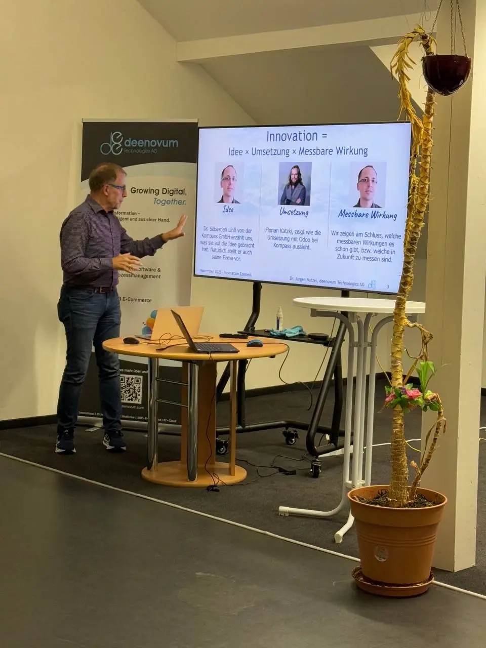 Die Veranstaltung zeigte, wie Unternehmen erfolgreich den Übergang von der Produktentwicklung zur Serienproduktion schaffen – schnell, transparent und mit messbaren Ergebnissen. Am Praxisbeispiel der Kompass GmbH wurde demonstriert, wie integrierte digitale Lösungen wie Odoo Prozesse optimieren, Transparenz über alle Abläufe schaffen und eine skalierbare Basis für nachhaltiges Wachstum und langfristigen Erfolg ermöglichen.