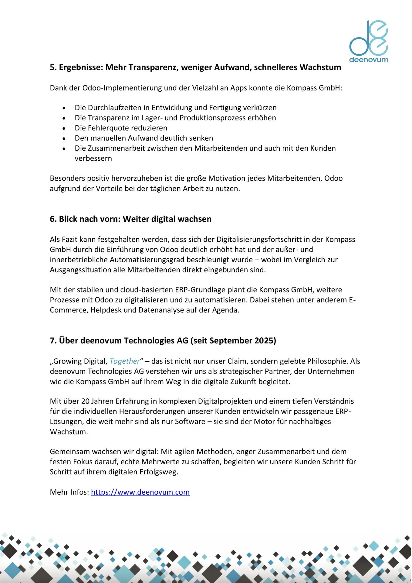 📌 Für uns von der deenovum Technologies AG bedeutet „Growing Digital, Together” genau das: Schritt für Schritt mit unseren Kunden wachsen, echte Mehrwerte schaffen und gemeinsam die digitale Zukunft gestalten. Die Zusammenarbeit mit der Kompass GmbH war ein Paradebeispiel dafür – wir sind stolz auf das, was wir zusammen erreicht haben.